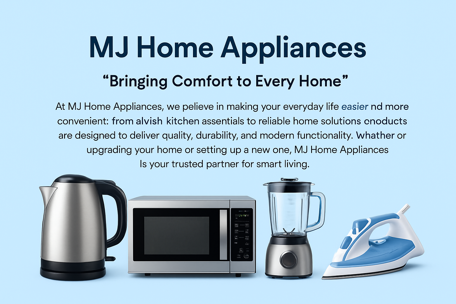“MJ Home Appliances is your trusted destination for modern, reliable, and stylish home solutions
